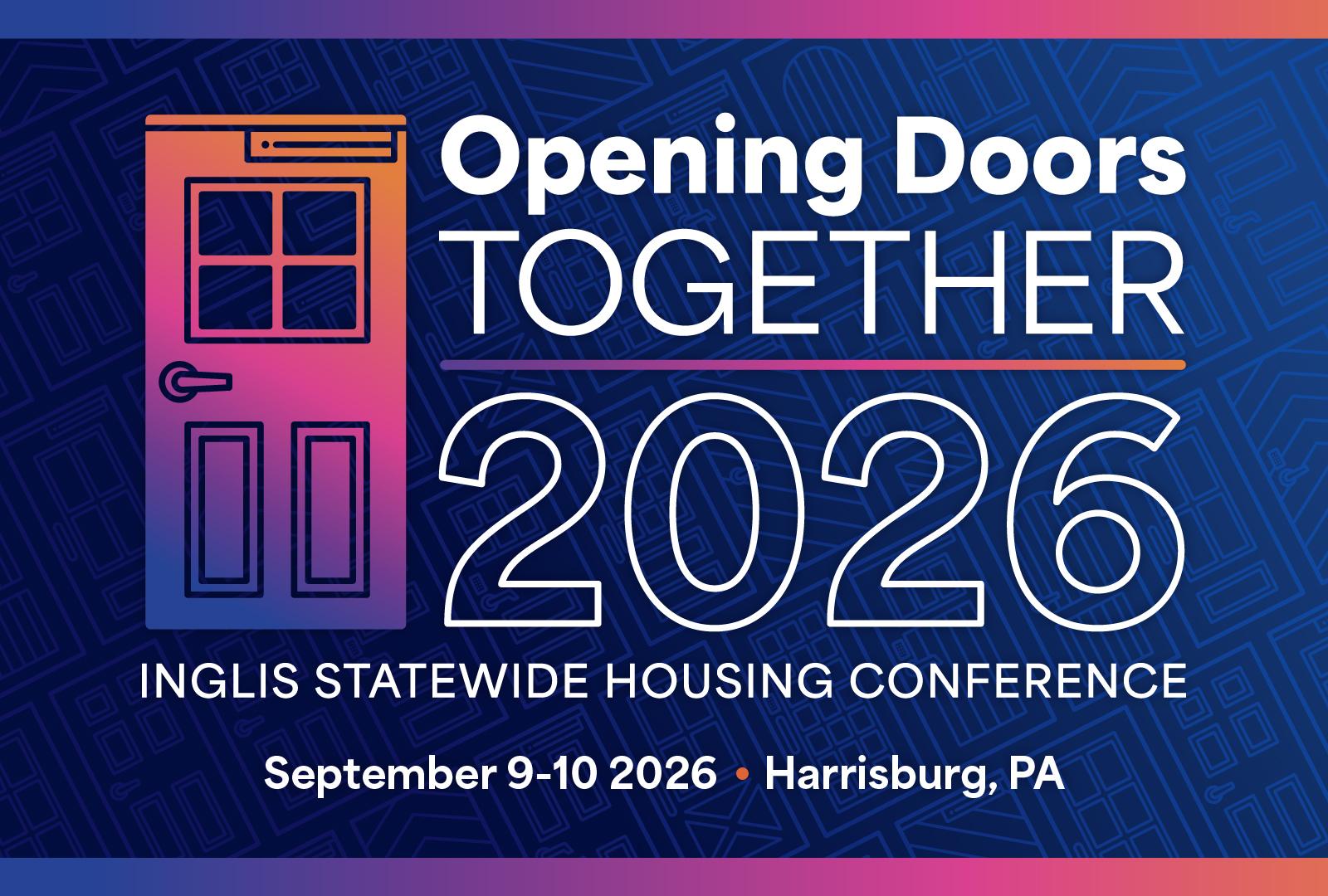 Save the dates for our annual, Statewide Housing Conference on September 9th-10th, 2026Accessible housing is a human right. Join Inglis alongside thought leaders from across Pennsylvania, as we share some of the latest innovations in service delivery; creative alternative support solutions and assistive technologies; and updates on advocacy opportunities and the policy shifts impacting housing access in the disability and aging adult communities. RegistrationRegistration for the annual statewide conference opens in March 2026. Stay tuned! Hotel InformationThe Opening Doors Together Conference will be taking place at the Best Western Premier Central Hotel & Conference Center in Harrisburg, PA. |